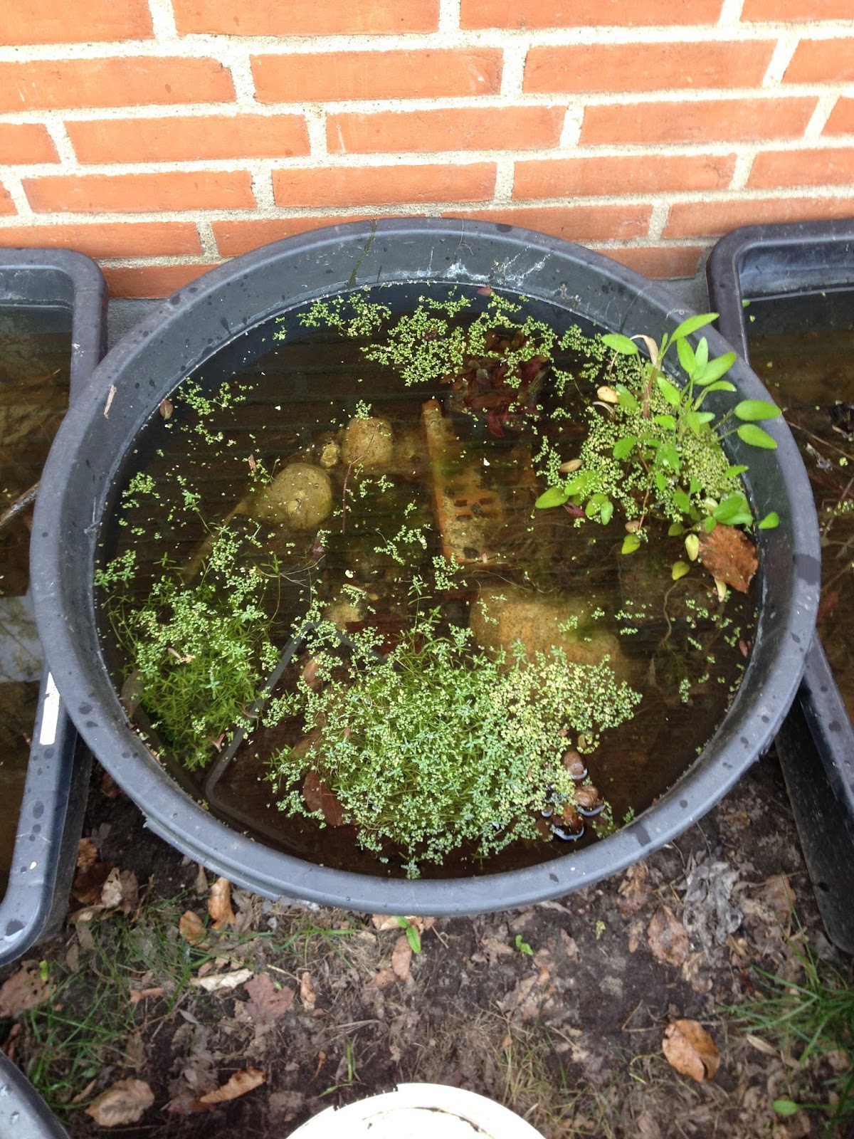 The last pictured tub is planted with some Callitriche sp. and Fontinalis sp. found in a local pond.